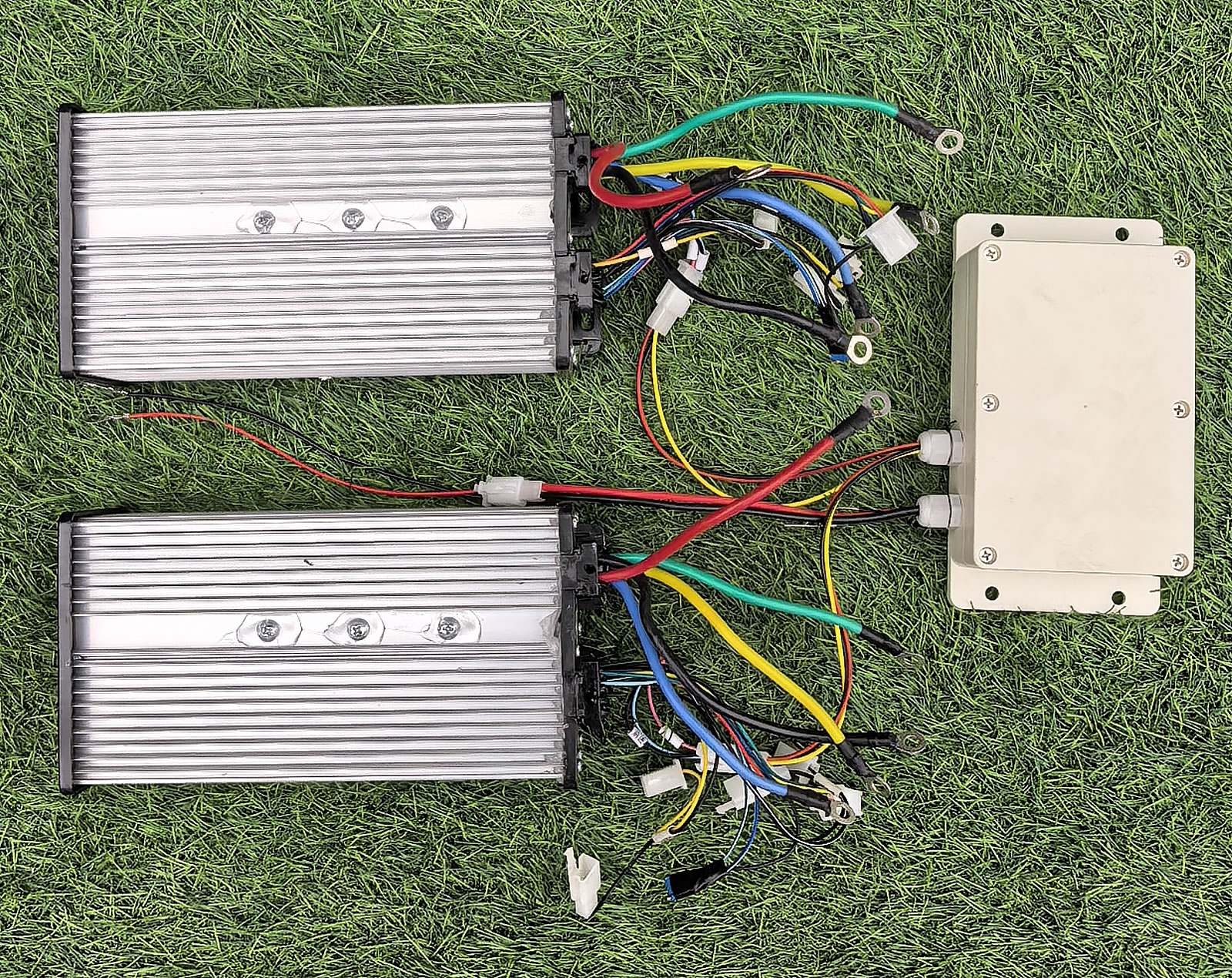 The integrated connection board combines two motor controllers and a remote control receiver in a waterproof box, ensuring reliable and long-lasting performance.